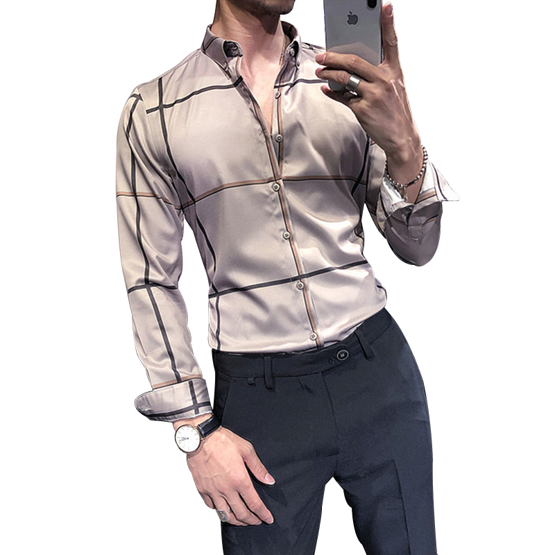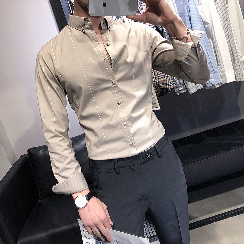 Spring and Autumn Shirt Men's Long Sleeve Korean Style Trendy Men's Plaid Shirt British Style Casual Handsome Slim Trendy Brand Men's Clothing
