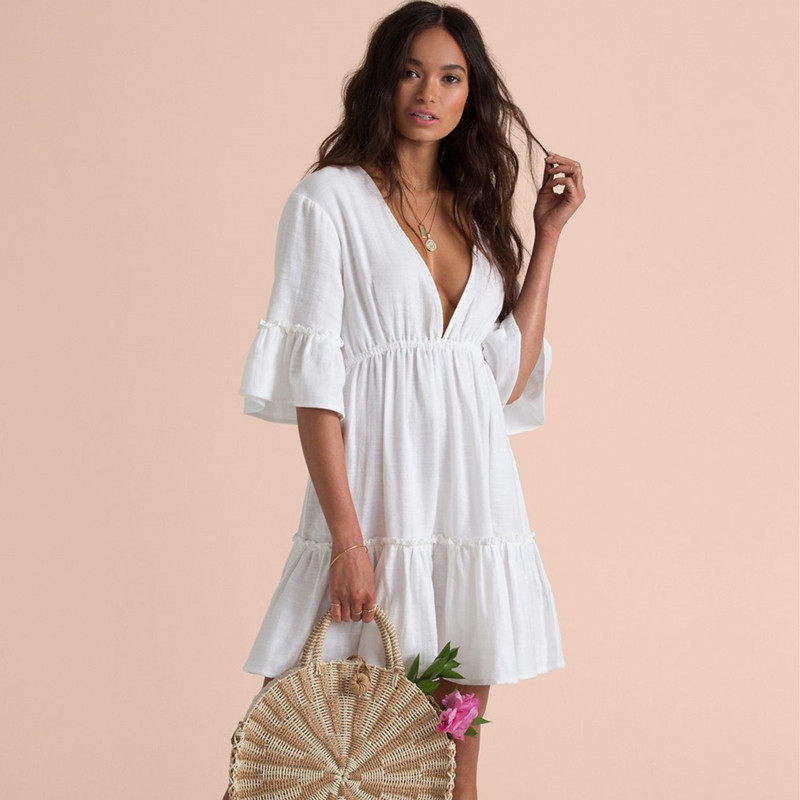 New vacation sun-protective cotton white bikini swimwear cover outfit beach dress female can be drained