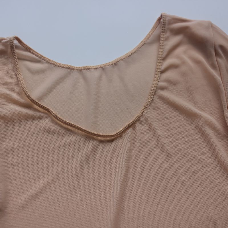 Meat Colour Bottomed Ultra Slim T-shirt Long Sleeve Mesh Yarn Blouse Skin Color Invisible Perspective Performance with a dance hit bottom large size