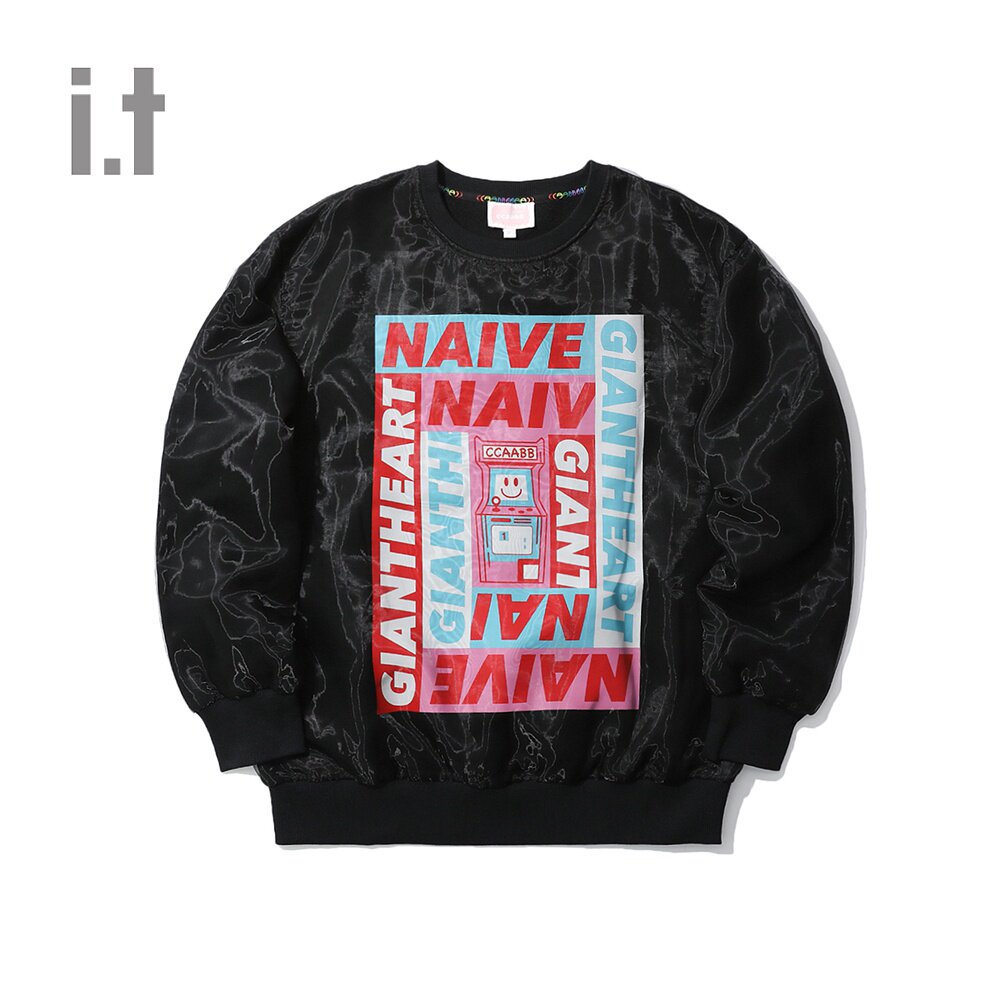 it ccaabb women's round neck thick cotton T autumn trend pattern printing mesh stitching 004XD