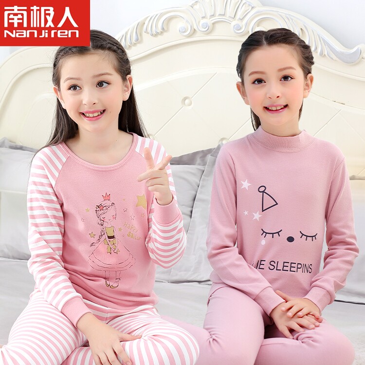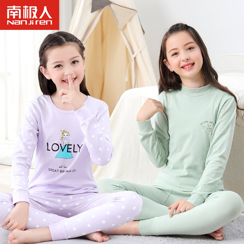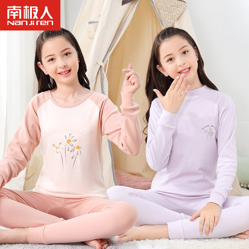 Girls ' autumn clothes Sanitary pants set cotton medium and large virgin girl pajamas Children's thermal underwear Cotton sweater spring and autumn and winter