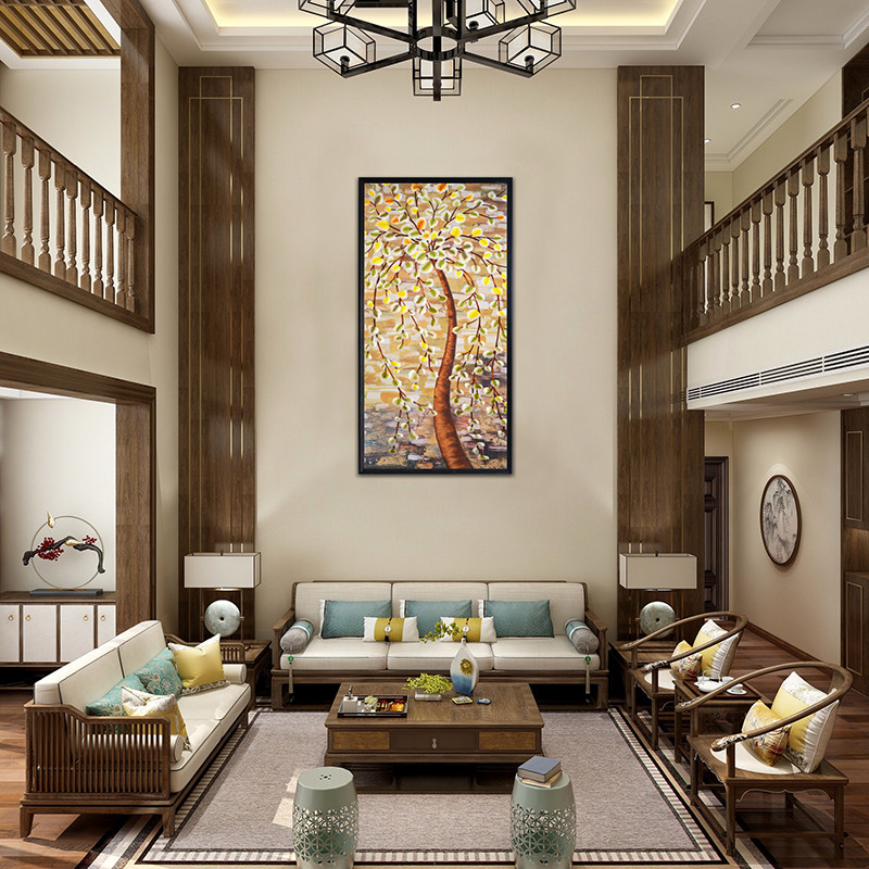 New Chinese Xuan Guan Decoration Painting Living Room Bedroom Hair Treasure Tree Hanging Painting Featured Handmade Embroidery Plant Painting Book House Wall Painting