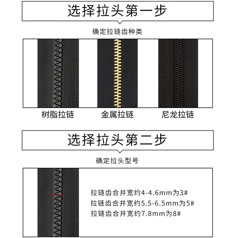 No. 5 (Type A-gun black 10) is suitable for nylon zipper No. 5 (B type-gun black 10) is suitable for nylon zipper No. 5 (C type-gun black 10) is suitable for nylon zipper
