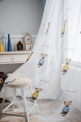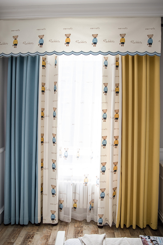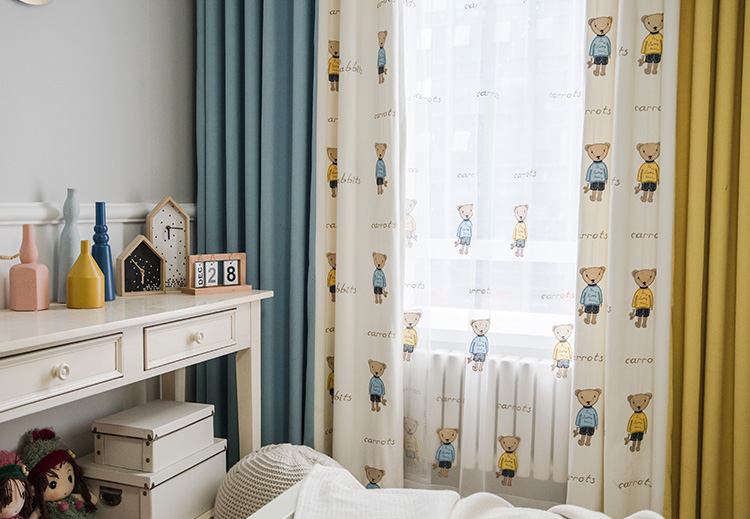 Huizhou Bear Children's Curtains Boys and Girls Bedroom Stitching Custom Cartoon Blackout Fabric Floating Curtains Embroidered Yarn Curtains