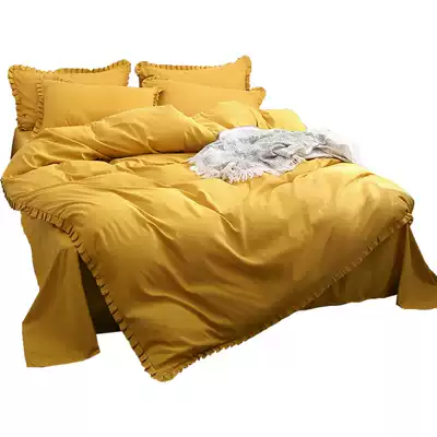 Four-piece bed networking red same style ins style simple trend lace quilt cover yellow bed hats dormitory three-piece set