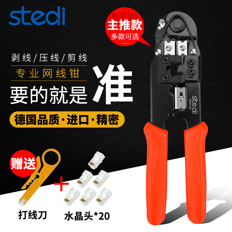 Sterly imported crystal head network wire pliers professional grade 8P five categories super six network telephone line crimping pliers with blades