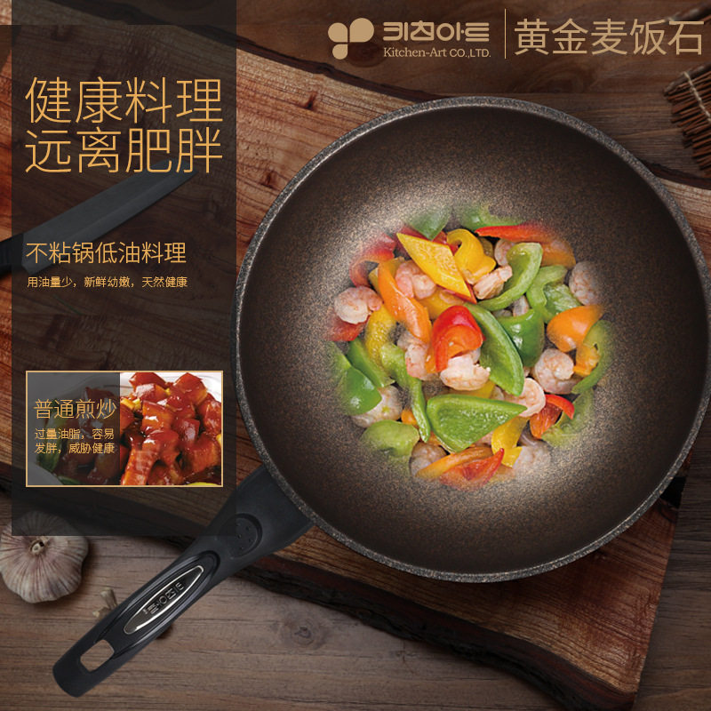 South Korea imports Kitchen-Art new gold medical stone unstained with frying pan cookware Dual use deepens 30 32