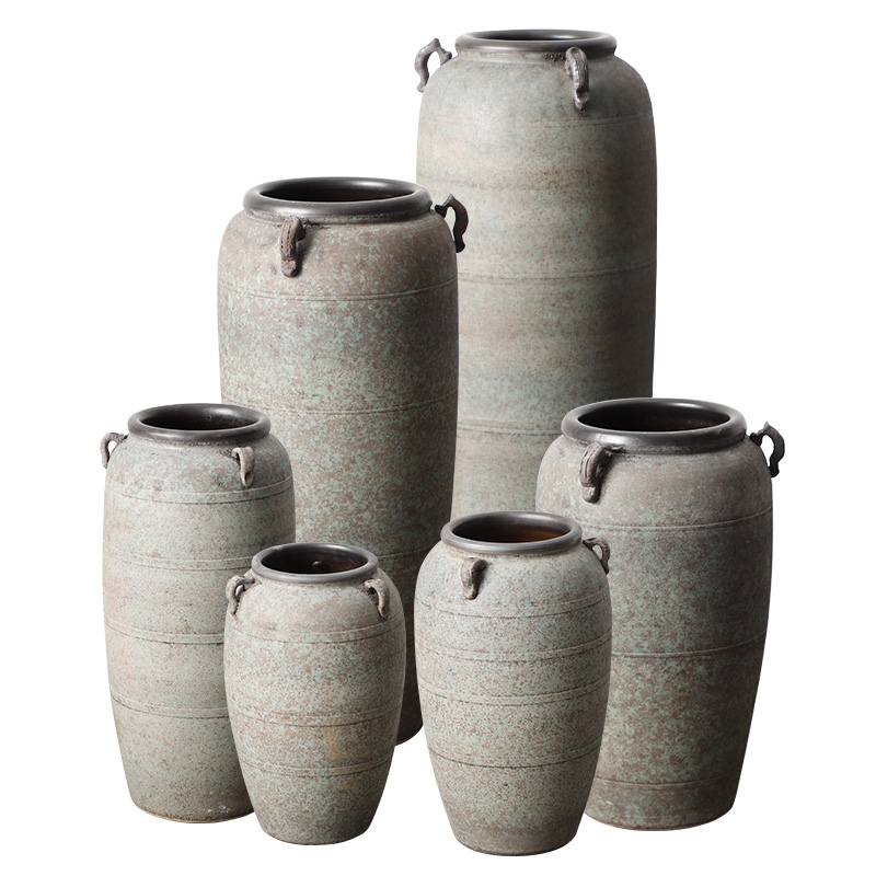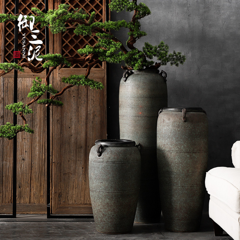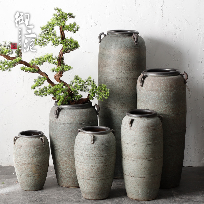 Retro Coarse Pottery Landing Vase Living-room Inserted Dry Flower Decoration Pendulum Decoration Chinese Style Modern Pottery Jar Large Caliber Zen flower pot