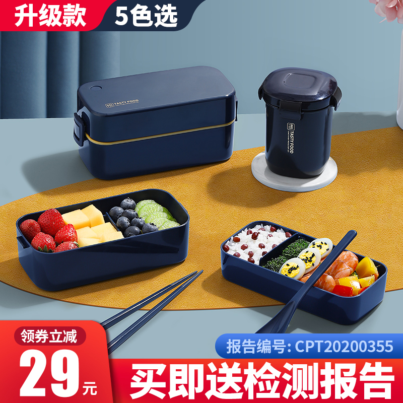 Double-layer lunch box Lunch box office worker Japanese fat reduction fitness light food Fruit lunch box female insulation can be heated by microwave oven