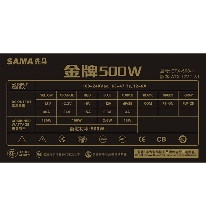 Xianma gold medal 500W computer power supply desktop atx host rated 500w energy-saving power supply 550W host power supply