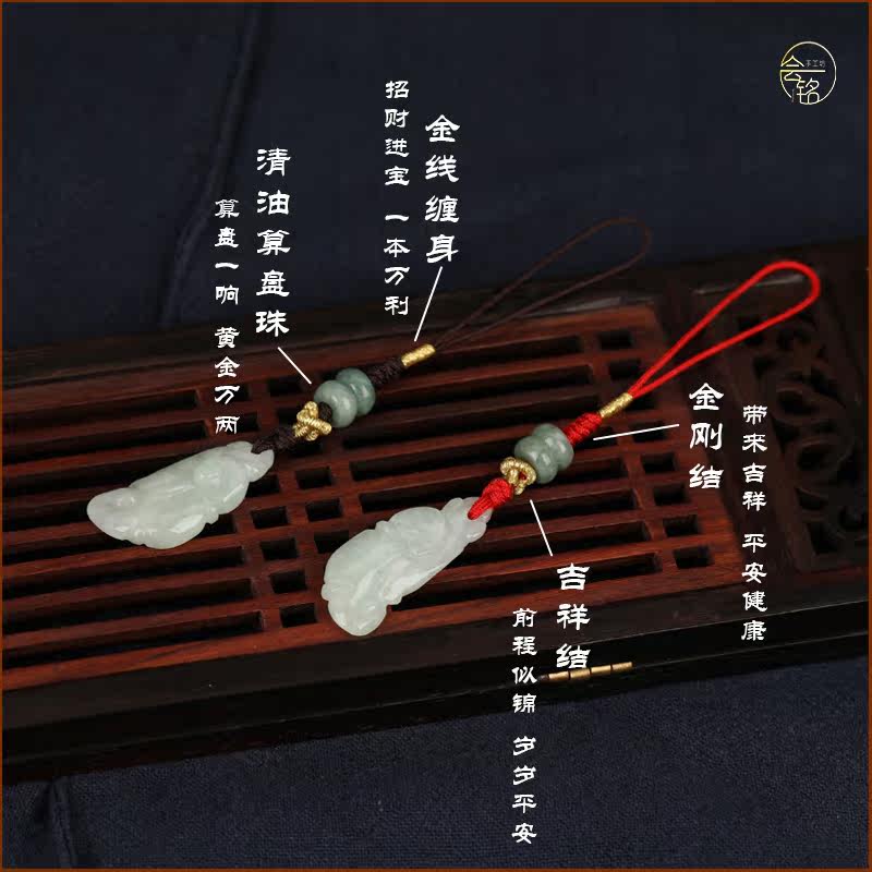 Huiming handmade jade jade Ruyi hand woven mobile phone charm rope pendant Auspicious ancient style of the year of life