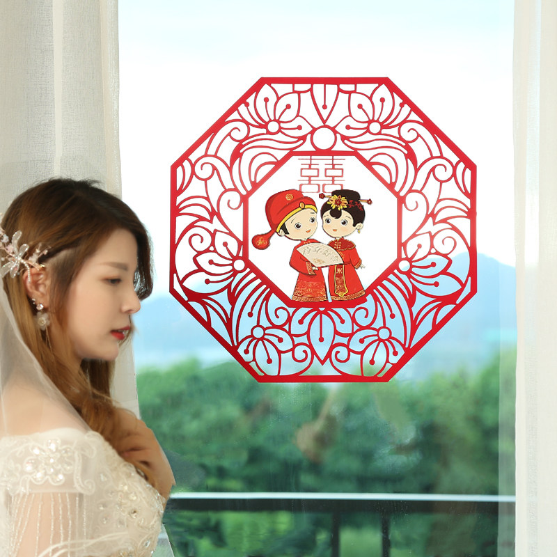 Cartoon Comedy wedding wedding decorated with a set of happy words stickers for wedding with a door glass sticker on the door