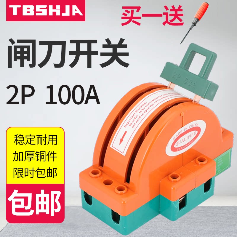 Two-way switch knife switch household 220V dual power switch switch switch gate 2P100A double-throw reverse switch knife switch