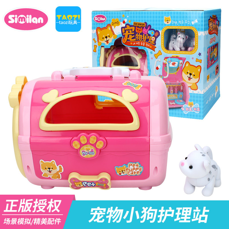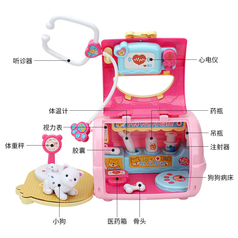 Little scholar pet puppy care house girl pretending to be home wine toy pet hospital mini handbag gift 3-6