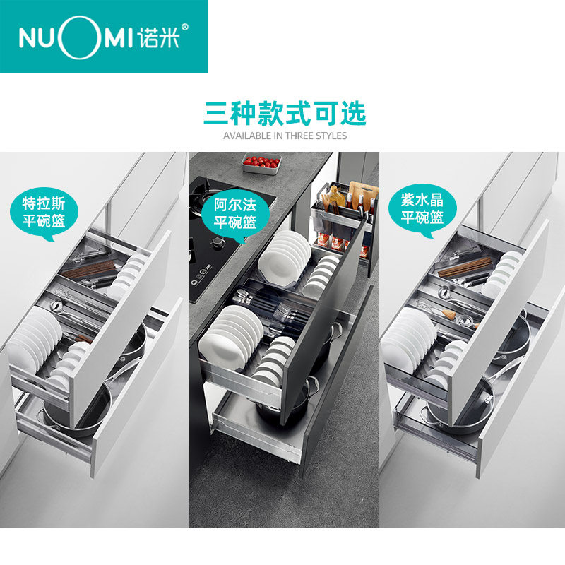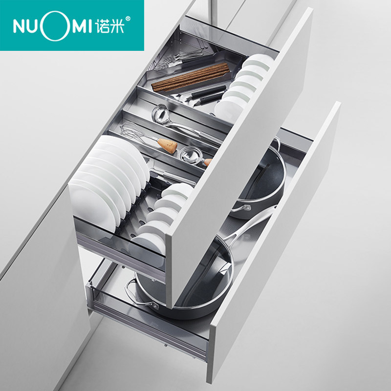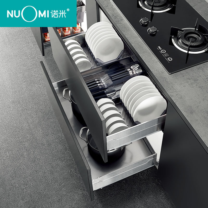 NUOMI Kitchen Basket Cabinet Drawer Type Thickened 304 Stainless Steel Double Decker Dishes Basket Seasoning Basket