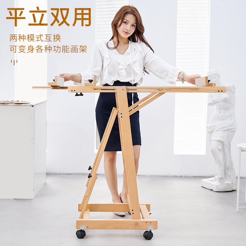 Beech Wood Production Flat Stand Dual-use National Easel Drawing Board Suit Folded Multifunction Support Frame Advertising Exhibition Rack Flat Release Lignin Sketch Speed Writing Raw Water Pink Oil Painting Shelf Indoor Fine Arts Building Disc Show Shelf-Taobao