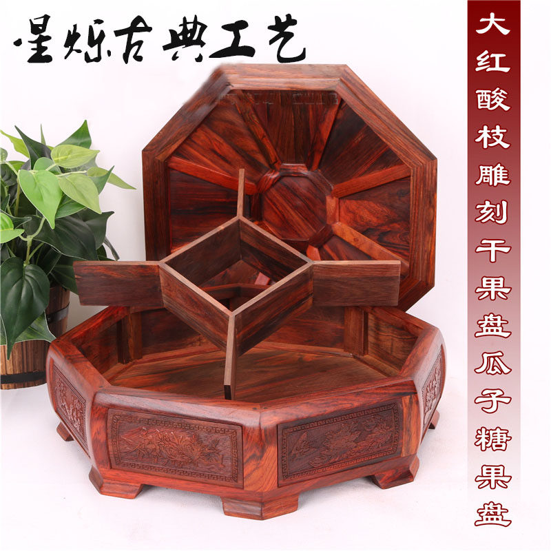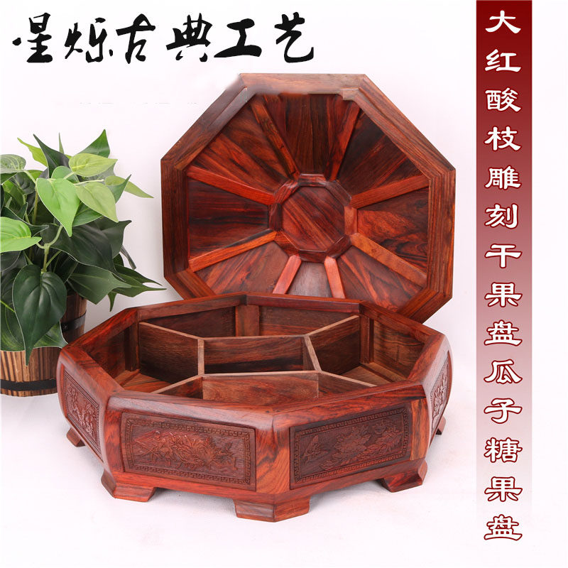 Myanmar mahogany fruit tray dry rack fruit creative red acid branch star anise candy box solid wood fruit basket snack tray ornaments