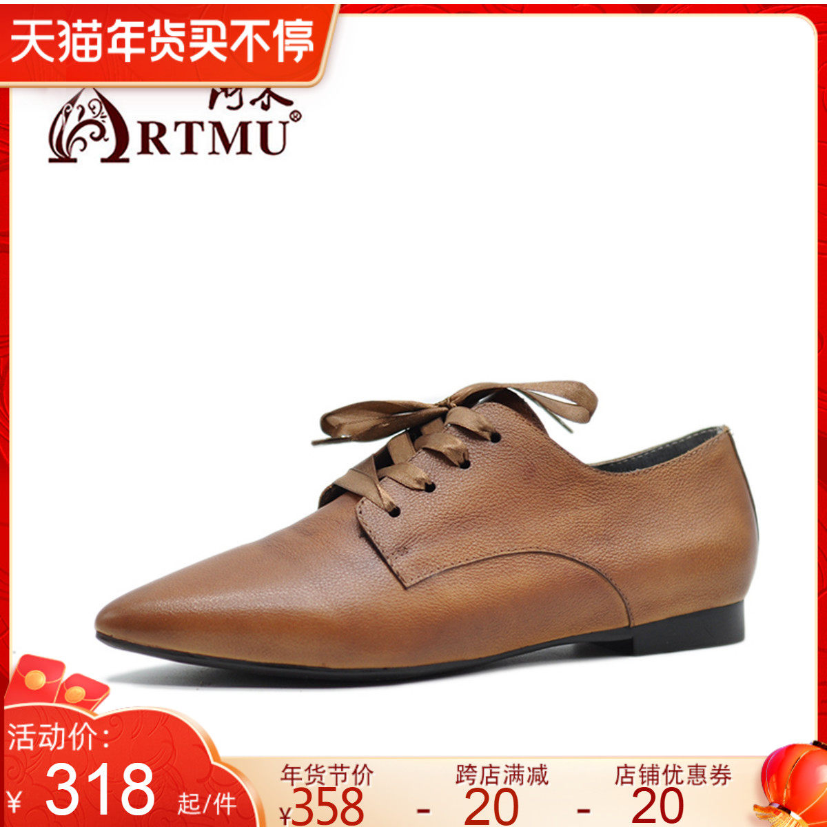 Artmu original retro pointed flat bottom deep mouth shoes women soft bottom British small leather shoes four seasons shoes new