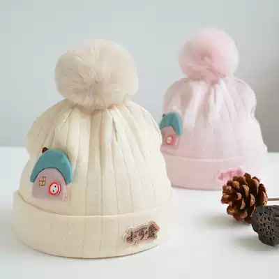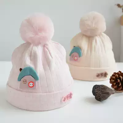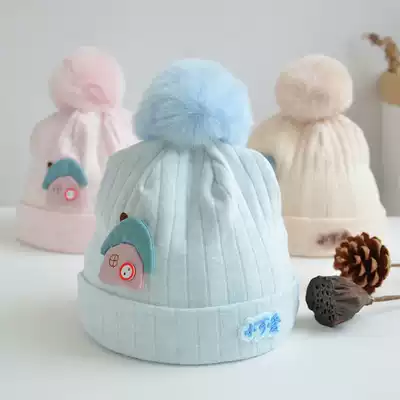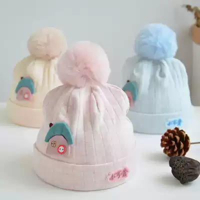 Spring and Autumn Newborn Tire Cap 0-3 month 1 baby hat ear protection wool ball cotton winter newborn children and boys