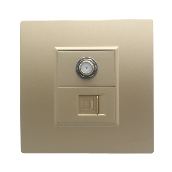 Champagne Gold 86 Type Computer TV Socket Golden Network Route Internet Satellite Digital Broadband English F Head Panel