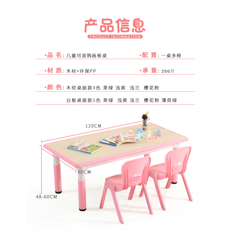 120*60 lifting whiteboard table Single table 120*60 lifting wood grain table Single table 120*60 wood grain mint green whiteboard table 1 table with 6 exquisite chairs Cherry pink whiteboard table 1 table with 6