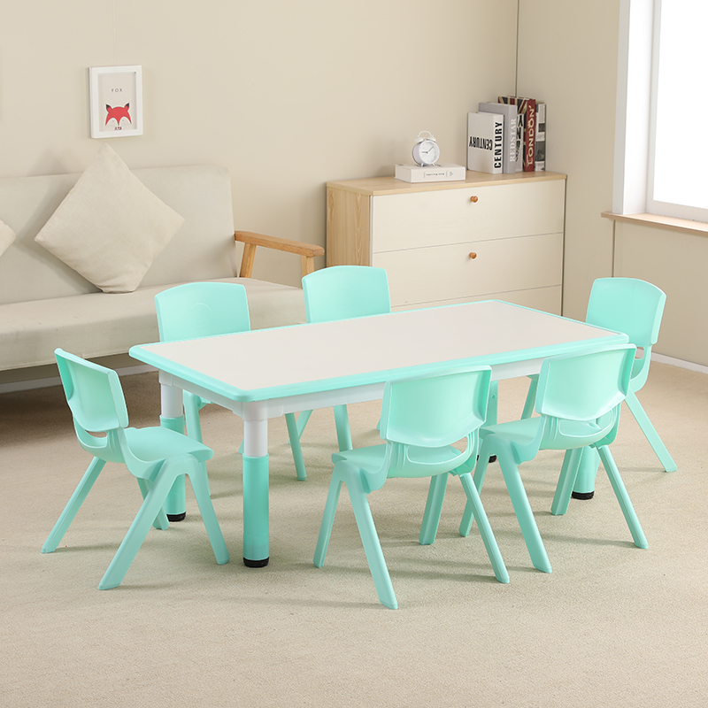 Kindergarten table Plastic rectangular children's lifting learning table and chair set Baby drawing table Doodle table