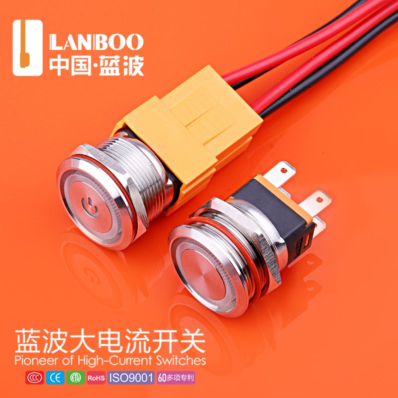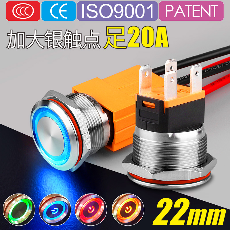 Blue wave button 22mm metal button switch 10 20A high current self-locking waterproof with lamp power button light