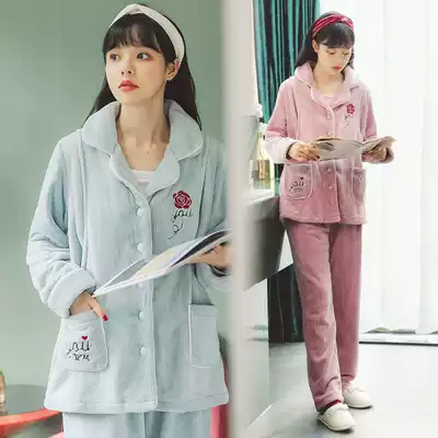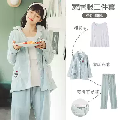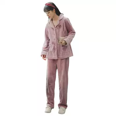 Miduli confinement clothes Nursing pregnant women pajamas winter plus velvet thickening maternal pregnancy nursing clothes Nursing suit