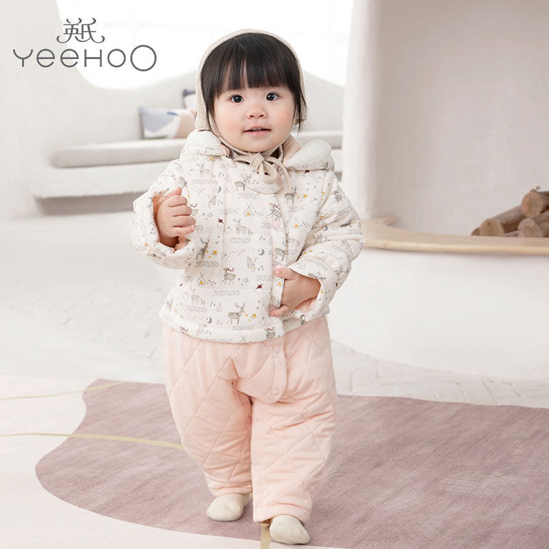 5 Fold up the winter baby clothes girl baby jacket down warm plug clothes baby and young children out crawling clothes