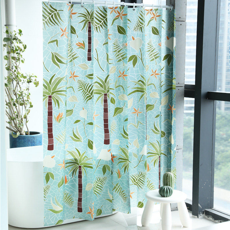 Merma EVA shower curtain waterproof cosmetic room partition curtain shower curtain set no hole warm bathroom hanging palm trees