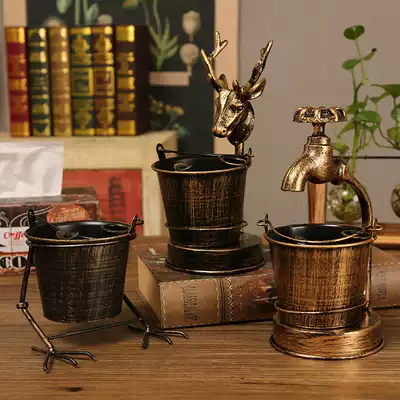 Wrought iron ashtray creative personality trend household living room coffee table bar anti-fall and anti-fly ash retro decoration decoration