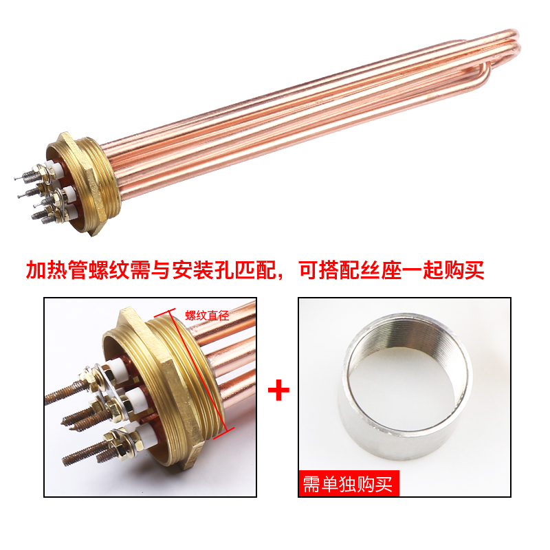 Water tank boiling water electric tube All copper heating rod DN50 DN4 Solar heating tube heater 3 9 12KW