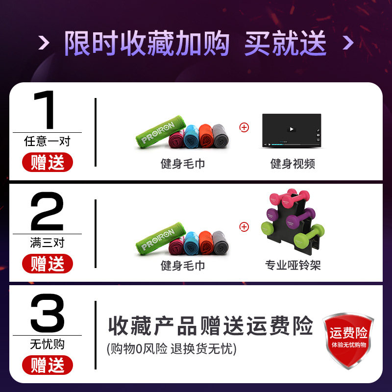 PROIRON women's small dumbbells household fitness equipment dipped pure iron 1 1 5 2 3KG children's student Yaling