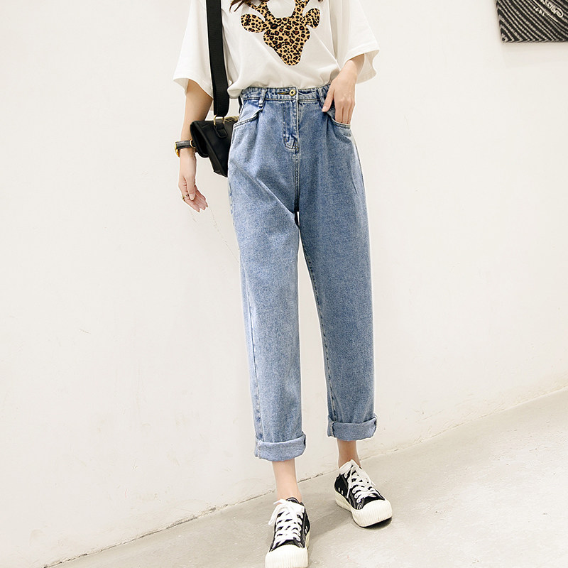 Jeans women loose high waist pants drop feeling wide leg straight tube web celebrity dad CEC radish show thin super fire everything