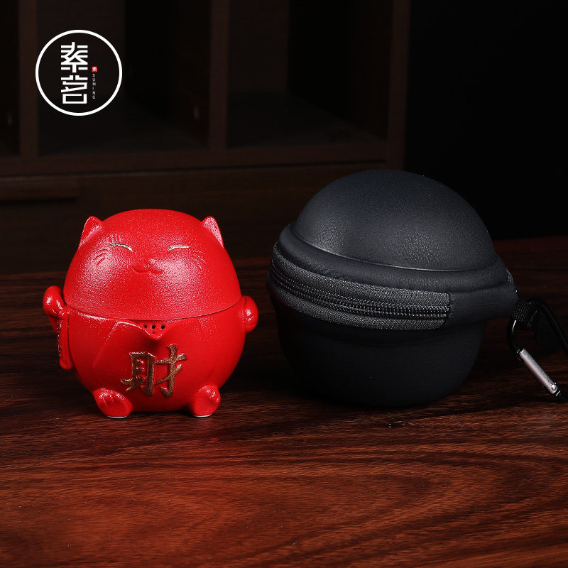 Su Ming Lucky cat Quick cup One pot two cups Portable tea set Small set Travel household Kung Fu tea customization