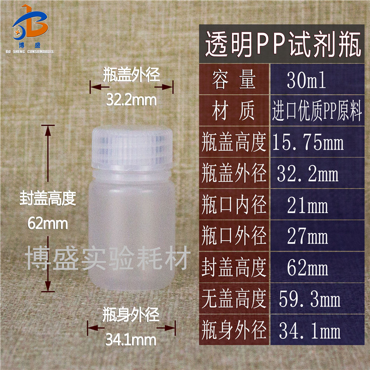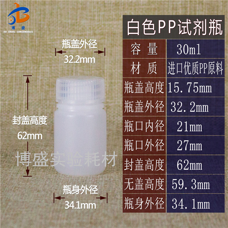 Brown photophobic sample bottle PP polypropylene reagent bottle large sample bottle split bottle reagent bottle Chemical bottle 30ml