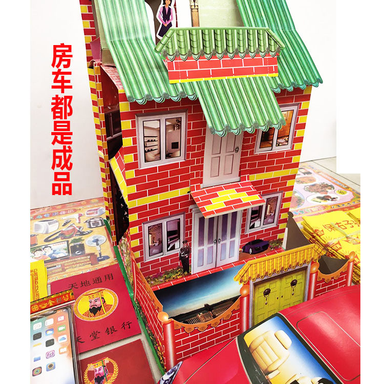 Sacrificial finished product Gold bar Ingot car villa set Paper money burning paper Yellow bubble paper Gold brick Sacrificial supplies