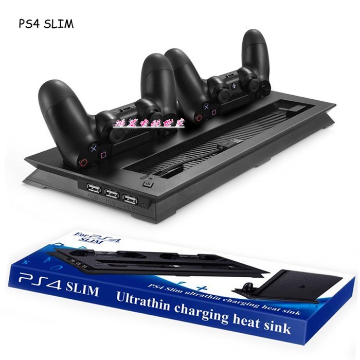 PS4Slim console stand PS4Slim ultra-thin vertical cooling fan cooler USB charger charging stand
