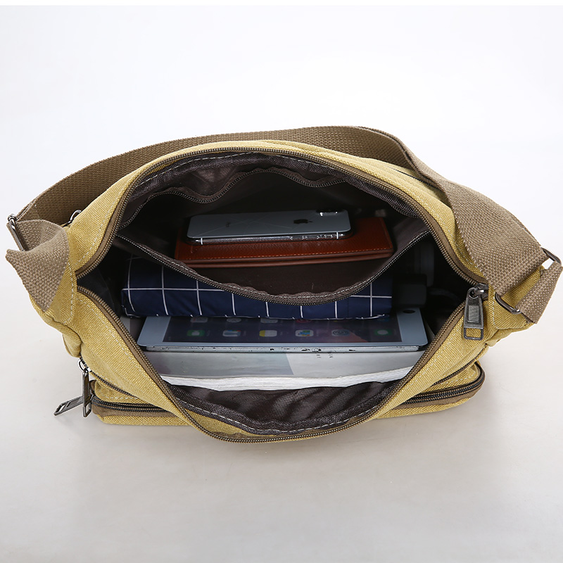 Single Shoulder Bag Men Brief Sails Cloth Bag Multilayer Mid Aged Skew Satchel Male Father Daddy Satchel Business Kit