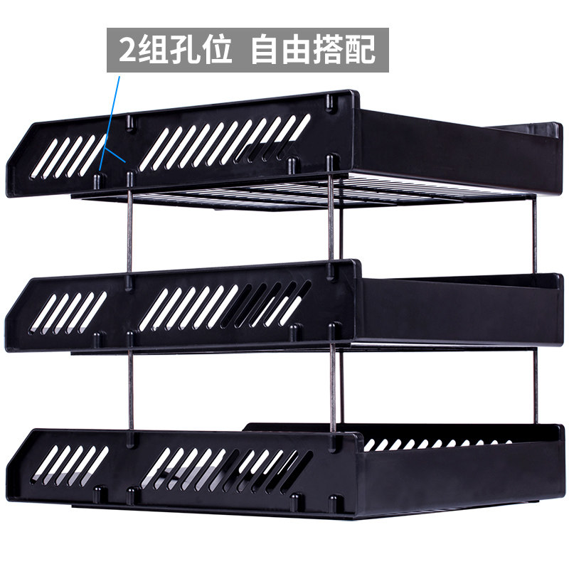 Deli 9209Z document holder three-layer plastic horizontal document frame File finishing data storage layer rack Storage document basket Multi-layer black document rack