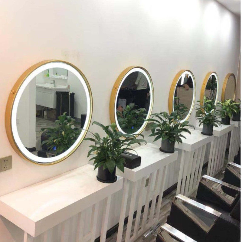 Eurostyle hotel hair salon hairdressshop luminous mirror hanging wall led bathroom mirror round mirror make-up mirror with lamp make-up mirror