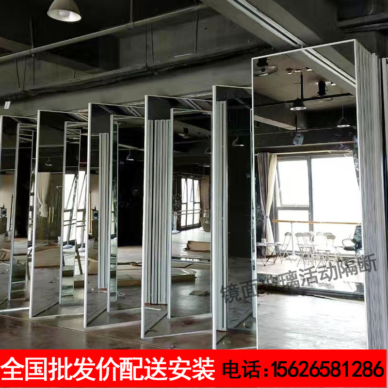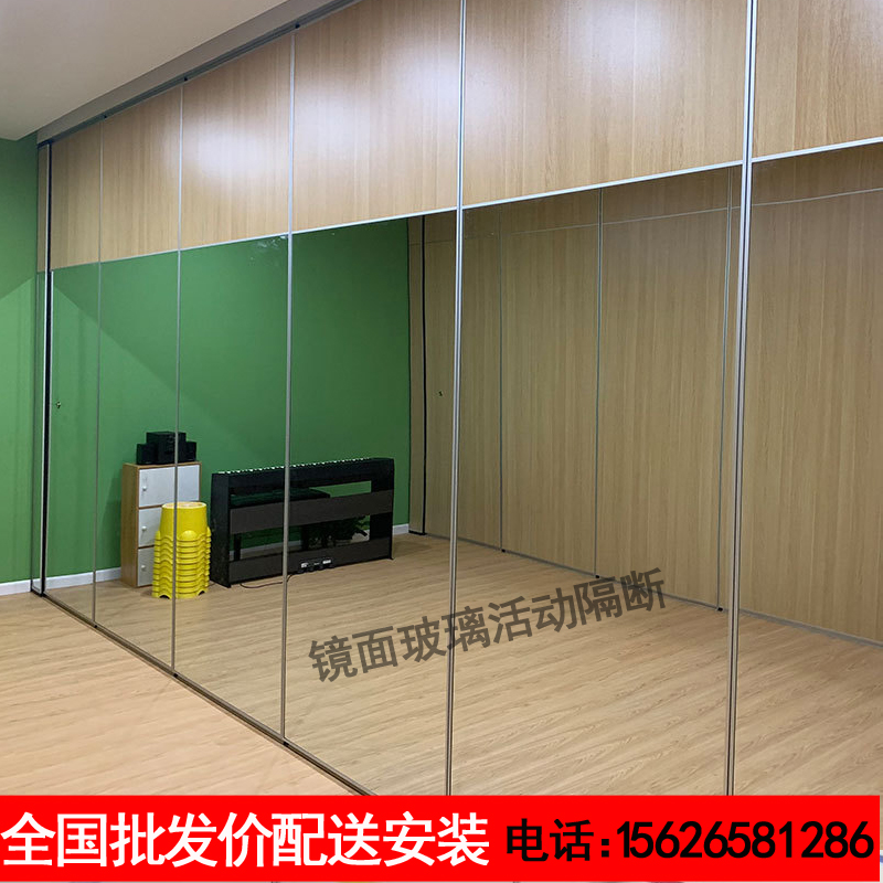 Yoga dance studio mirror glass movable partition wall folding soundproof sliding rail type mobile screen practice room