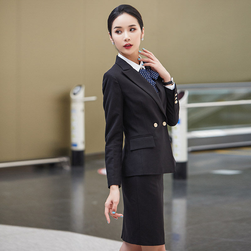 Black Professional Suit Suit Lady Temperament Korean Version College Student Interview High-end Western Suit Jacket Positive Dress Work Suit