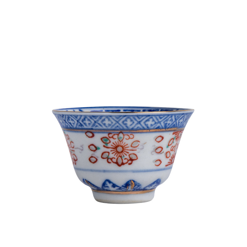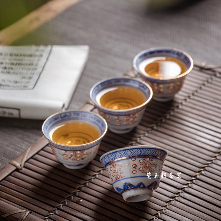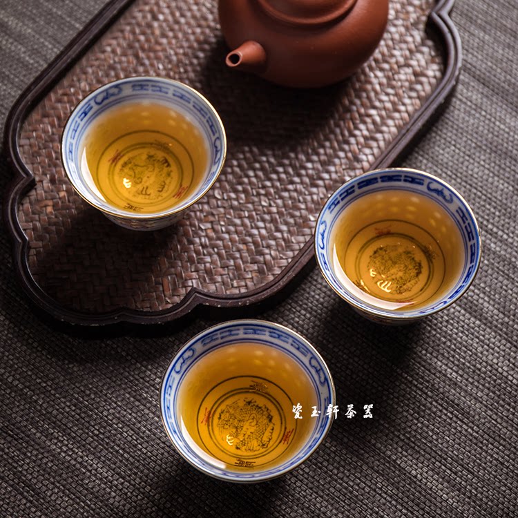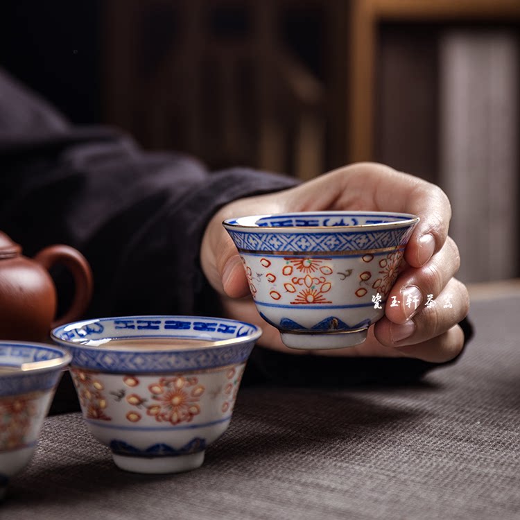 Jingdezhen Porcelain Yuxuan In the 1980s Guangming Porcelain Factory plus color blue and white exquisite ceramic horseshoe cup Master tea cup