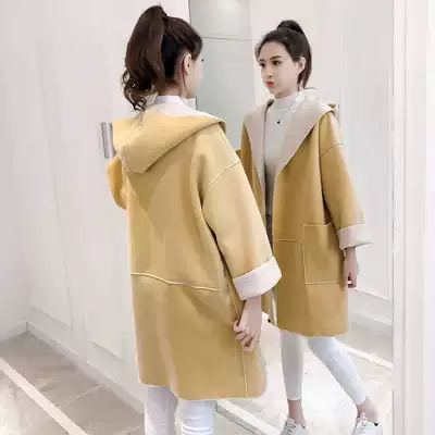 Pregnant women's coat spring and autumn Korean version of loose fashion pregnant women's autumn woolen coat medium and long version of two-sided woolen coat