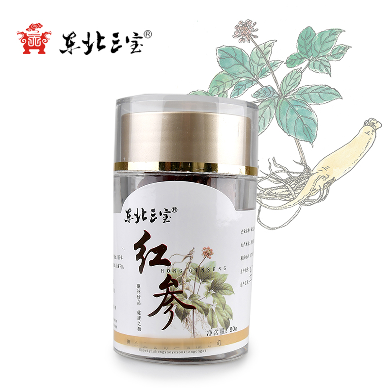 Northeast Sanbao red ginseng slice sugar-free Changbai Mountain traditional nourishing sealed bottled Korean ginseng 6 years root 50g