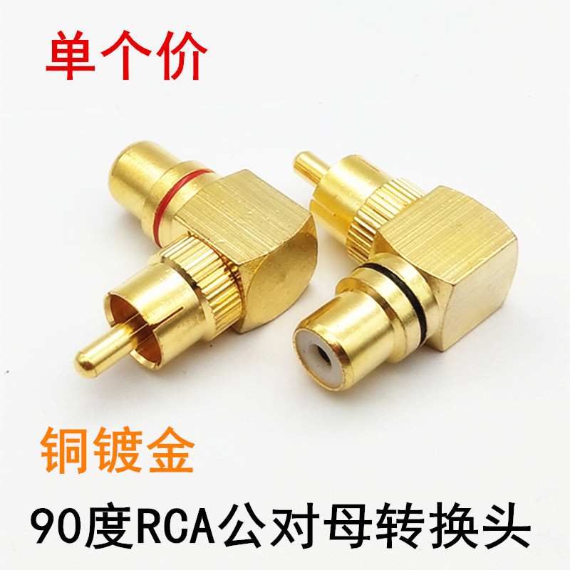 Copper gilded L-type lotus RCA right angle elbow 90-degree male-to-mother conversion plug revolution mother audio adapter