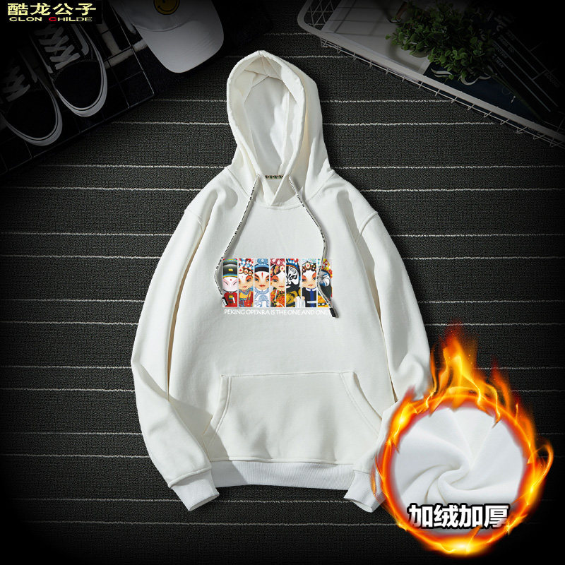 Hooded sweatshirt Male hip-hop loose velvet thickened ins Port wind pullover hoodie Korean version of the trend autumn and winter jacket