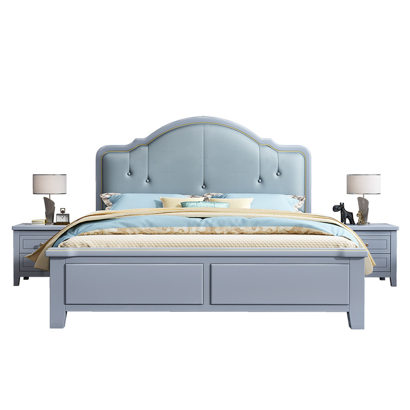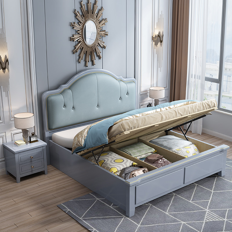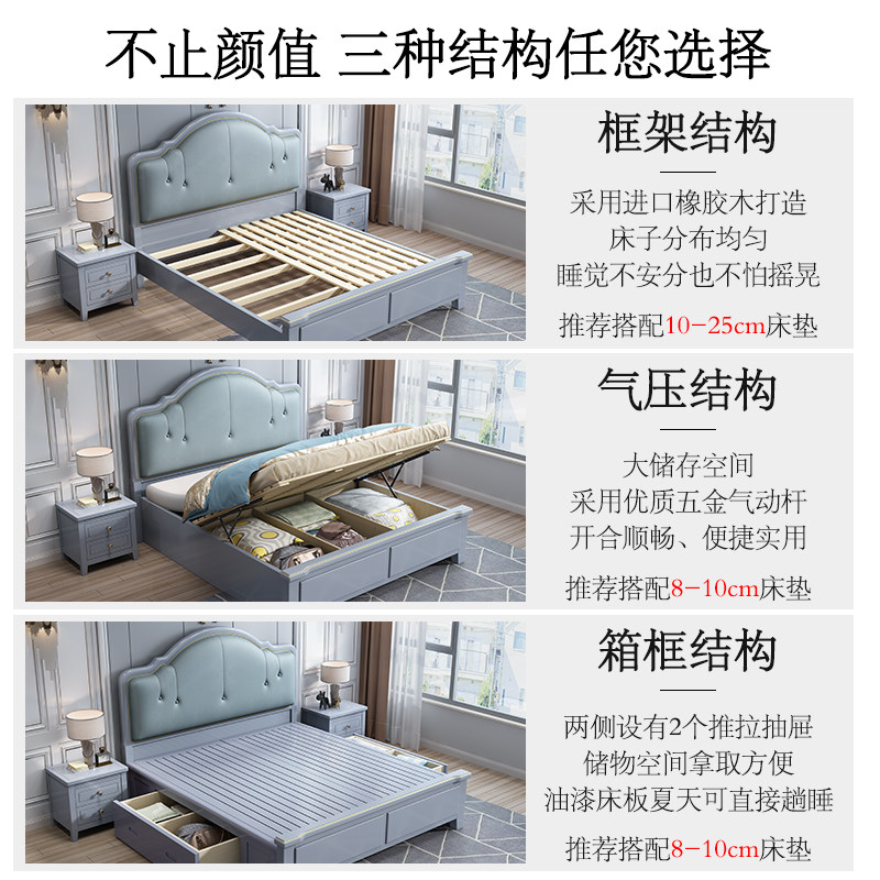 Modern simple solid wood bed Master bedroom 1 8 meters double bed American light luxury 1 5 storage White princess soft bag wedding bed