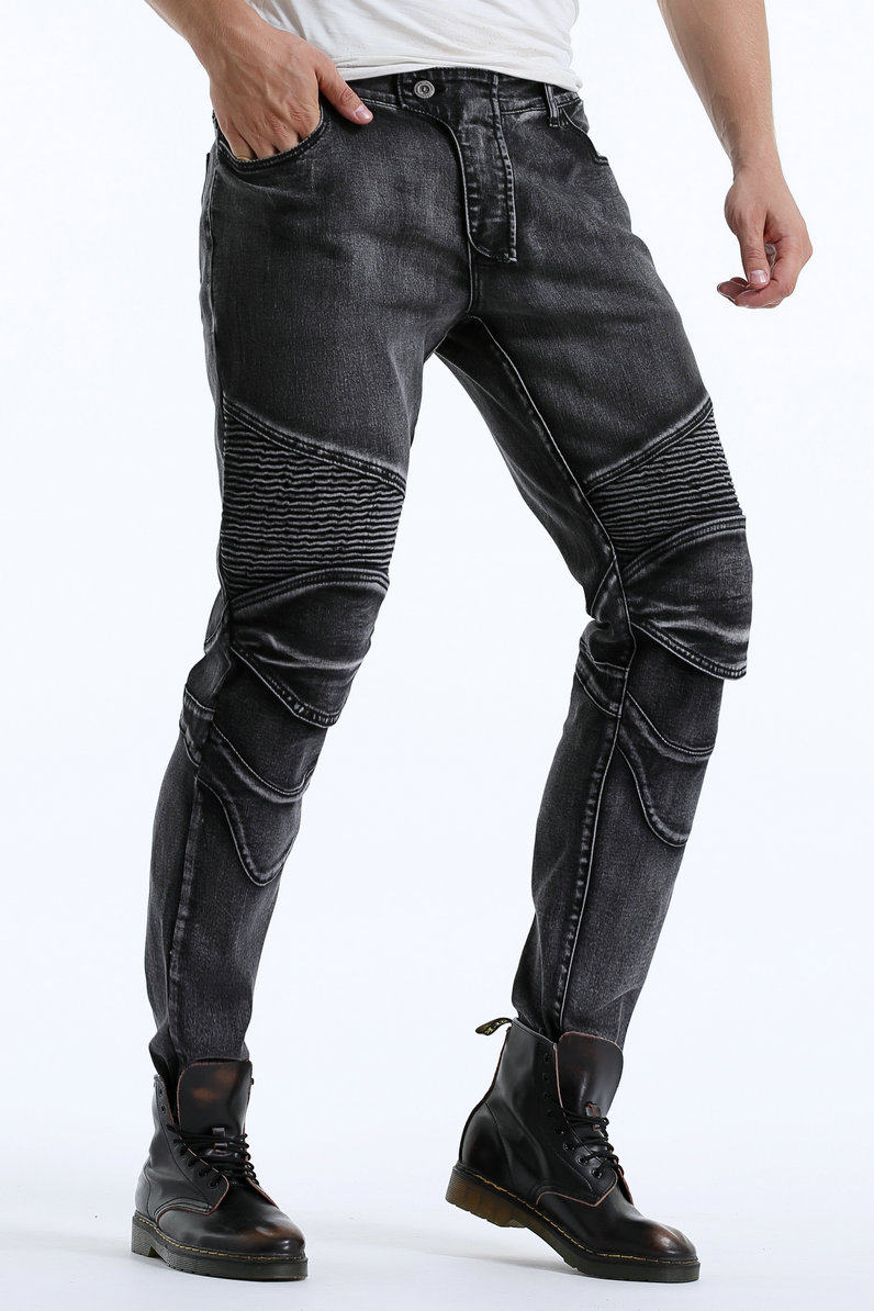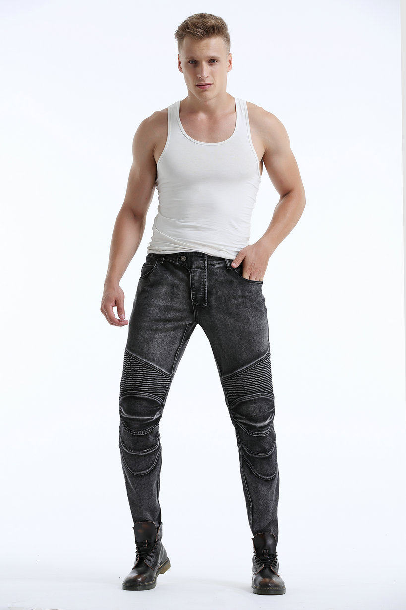 LOONG BIKER motorcycle jeans men's personality motorcycle retro riding pants racing drop-proof washed silver